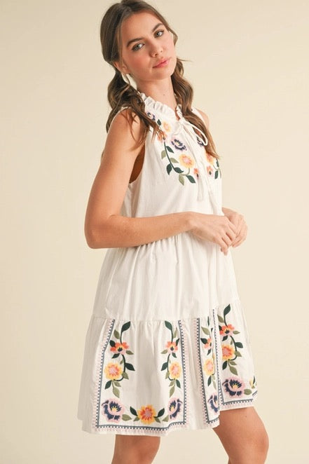 Embroidery Tiered Mini Dress
