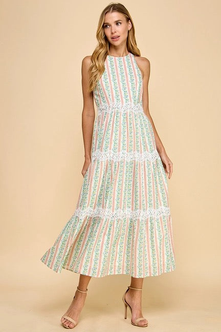 Floral Stripe Midi Dress