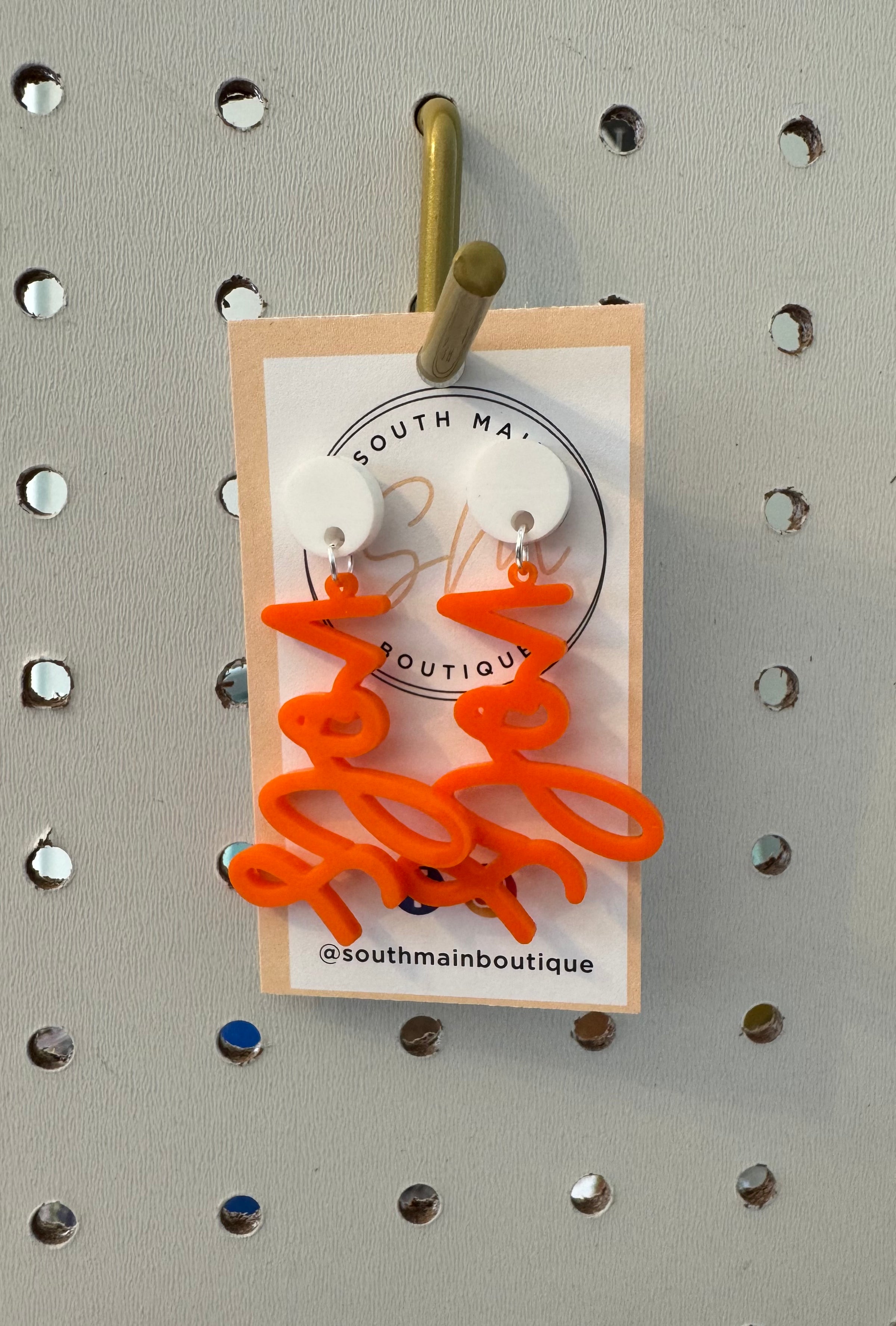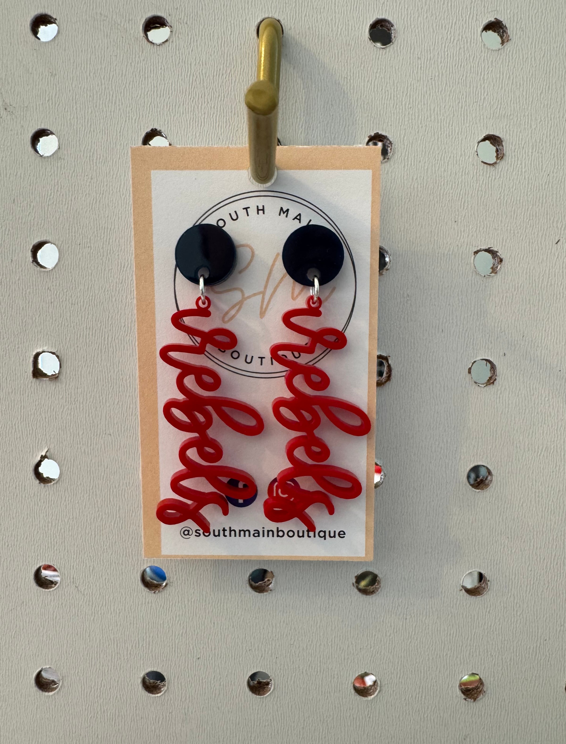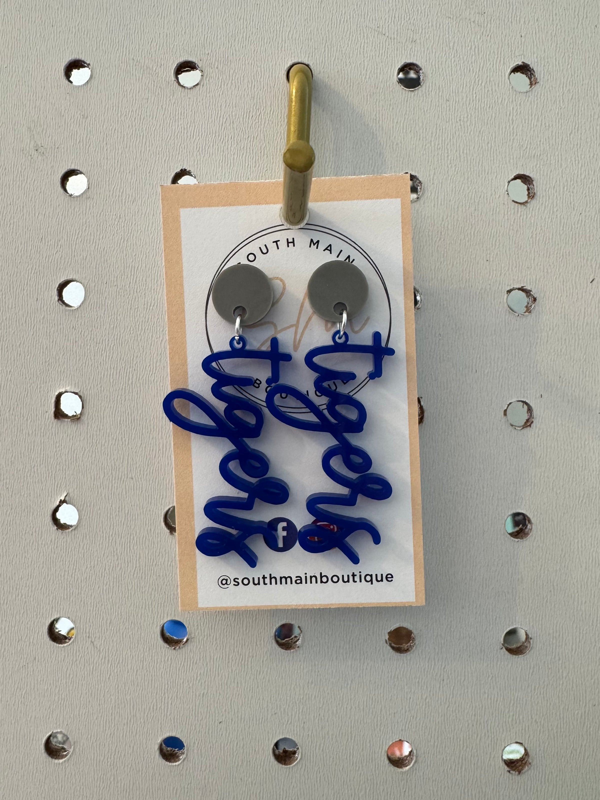 Show your school spirit with these custom team word earrings! Earrings Measure approximately 2.5" and are made of acrylic.