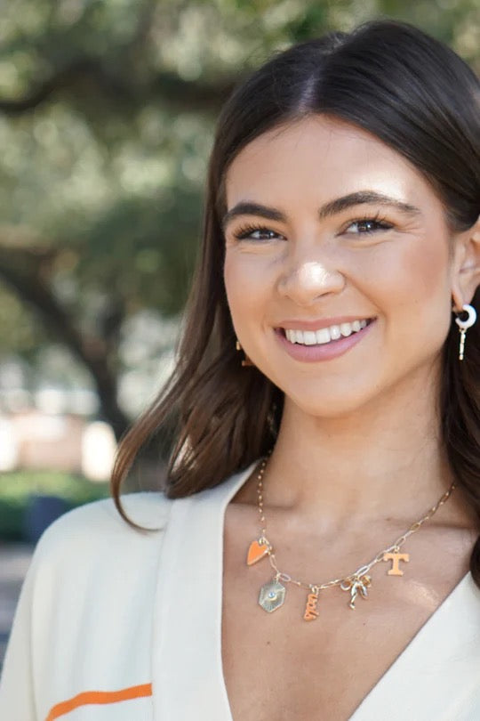 Tennesse Vols Paper Clip Charm Necklace in Shiny Gold